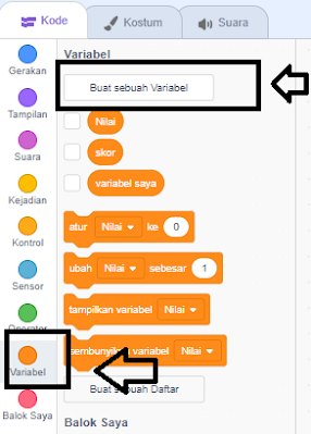 3. Kembali klik menu kode di samping menu latar (bagian kiri atas). Kita akan menambakan sprite dengan klik pilih sprite dan pilih unggah sprite. Untuk berlatih kita akan menggunakan empat sprite terlebih dahulu silahkan pilih keranjang sayur, keranjang buah, 1 buah dan 1 sayur. Unggah semua sprite atau kita dapat menambahkan satu persatu sprite yang kita miliki.
